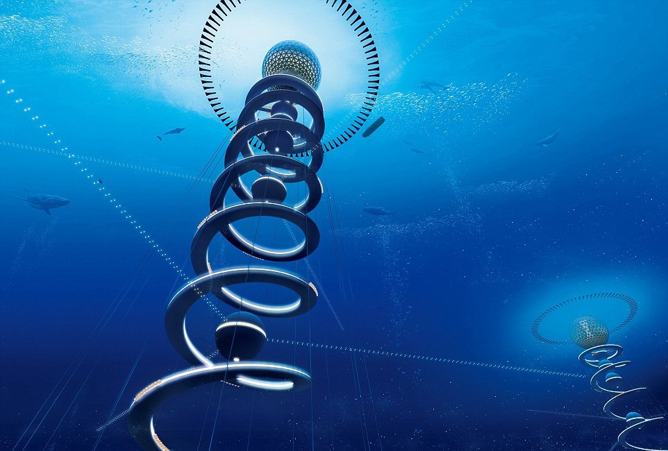 Shimizu Corporation, японская строительная компания, намерена построить город, который окажется под водой специально, а не в результате природной катастрофы. Проект представляет собой сферу пол-километра в диаметре, привязанную ко дну океана спиральной пуповиной длиной 15 км, сообщает CityMetric.