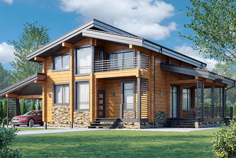 Сегодня на продажу выставлено 15 домов из клееного бруса сечением 200 мм на 250 мм. Коттеджи возведены по двум проектам «Модерн» и «Классика» площадью 155 и 170 кв. метров соответственно (плюс площадь террас и навеса для автомобиля).