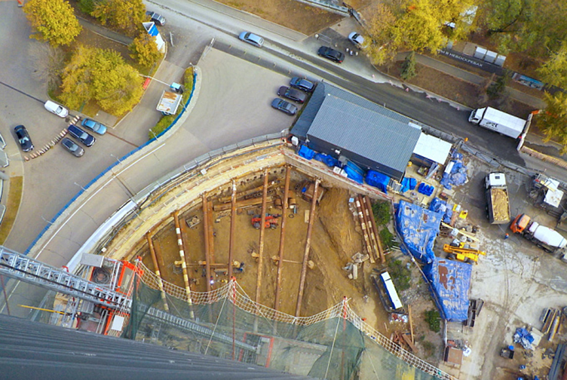 Также монтируют вертикальные коммуникации на уже готовых этажах: электричество, канализацию, общедомовые и внутриквартирные воздуховоды, выполняют разводку и монтаж спринклерной системы пожаротушения. Монтируют профиль для установки фасадных элементов в River Tower и City Tower, устанавливают кронштейны в плитах перекрытия под фасад и подъемники с направляющими. Продолжается выемка грунта и монтаж распорной системы на минус третьем и четвертом уровнях паркинга.