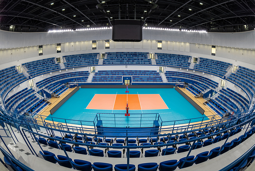 В комплекс входит 4-секционное здание переменной этажности от 13 до 28 этажей, волейбольная арена и административно-офисное здание