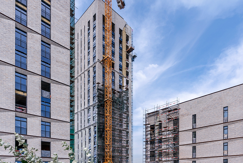 В премиальном комплексе «Медный 3.14» (на фото), который Capital Group строит в центре Москвы, монтируют медные навесные вентилируемые фасады на корпусе № 1.14. На первых этажах домов устанавливают элементы стойко-ригельной системы витражей. В местах общего пользования и 2-уровневом подземном паркинге завершают черновую отделку. На лестничных маршах укладывают керамогранит, внутри квартир ведется кладка межкомнатных перегородок.