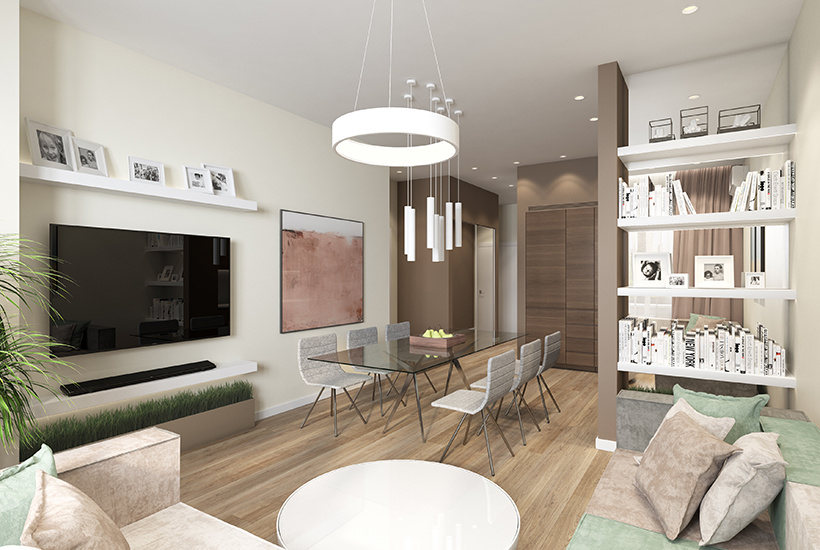 Увидеть варианты отделки можно в шоурумах, сделанных в «Искра-Парке». Дизайн-проект представлен в трех решениях: современные темный, светлый и контрастный. Первый основан на сочетании природных оттенков. Это дубовая паркетная доска и благородно-коричневые стены, имеющие плотную однородную текстуру. Второй – практичный, со сдержанной элегантностью и строгими линиями. Преобладают белый, бежевый и светло-коричневый тона. Третий – ритмичное сочетание темных акцентов со светлыми тонами основных поверхностей: дубовой паркетной доски и белых стен.
