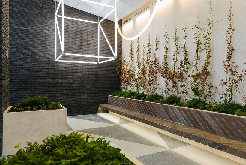 Компания «Донстрой», как сообщила ее пресс-служба, закончила отделку эталонной входной группы в комплексе бизнес-класса «Событие», который строят в районе Раменки на западе Москвы. Пространство представляет собой настоящий эко-оазис. Это патио с фактурными стенами, растениями и динамичным освещением с помощью подвесных фигурных ламп. Открытая входная группа сделана в виде зеленой галереи, расположенной на улице, но закрытой от солнца и осадков. Высота потолков в помещениях достигает 7 метров.