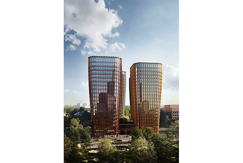 Исходя из имеющихся ТЭПов «Цимайло Ляшенко и партнеры» пересмотрели концепцию: выявили уникальный для столицы силуэт и разнообразили восприятие с различных видовых точек. Также решили и главную проблему предыдущего варианта – монотонность и массивность. Теперь единый объем разделен на четыре элемента. Трехэтажный цоколь стал двухэтажным и имеет структуру кругов. Общественные пространства проницаемы – с уровня крыши можно попасть в зону кинотеатра, ресторанов, кафе и спорта, а потом – в благоустроенный двор.