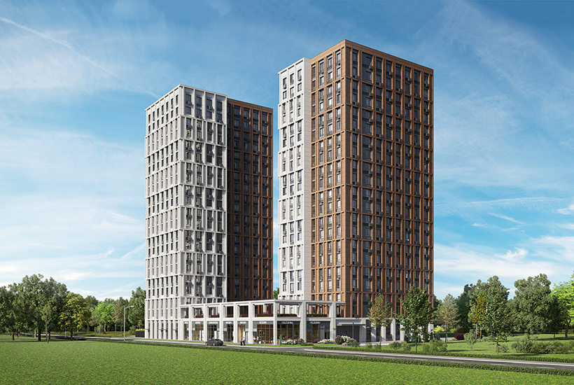 Архитектурную концепцию комплекса разработало бюро Apex. По словам его главного архитектора Антона Бондаренко, основой композиции стали две башни на едином стилобате. Такая форма зданий позволила максимизировать количество видовых квартир. Фасады домов облицуют крупноформатным коричневым керамогранитом и светло-серым камнем. Высота каждого из корпусов – 21 этаж.
