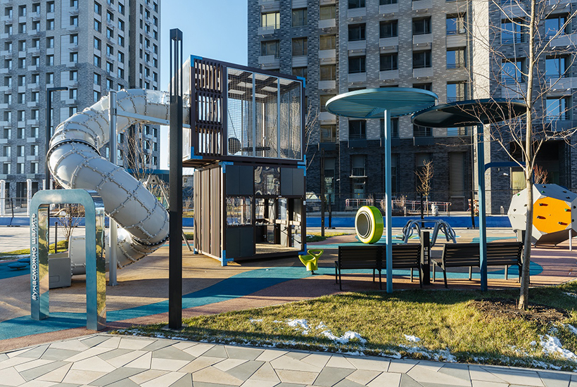 Территорию комплекса с двором, спортивными и детскими площадками огородят и обеспечат круглосуточной охраной. Также можно будет использовать инфраструктуру расположенного рядом квартала бизнес-класса «Сердце Столицы» с торговым комплексом, супермаркетом, фитнес-центром и бассейном.