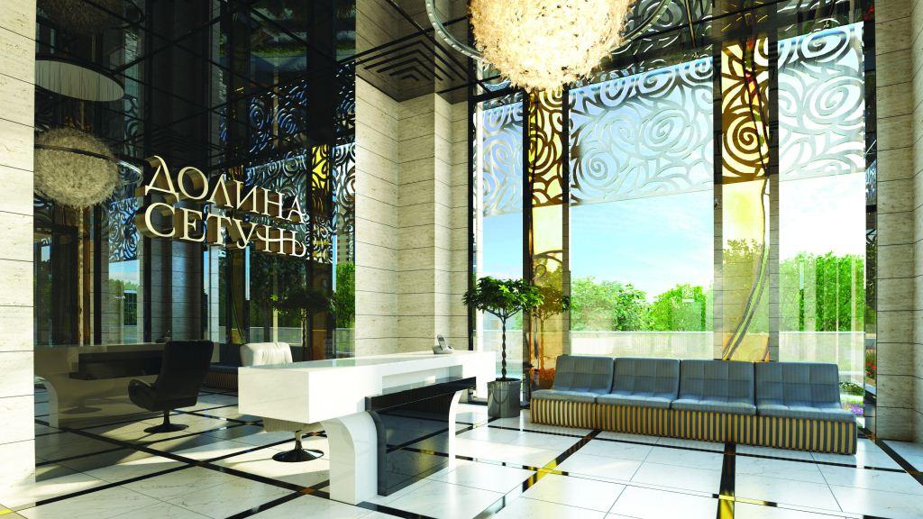 Для оформления общественных зон жилого комплекса «Долина Сетунь» был разработан дизайн-проект, предусматривающий использование эксклюзивных материалов.