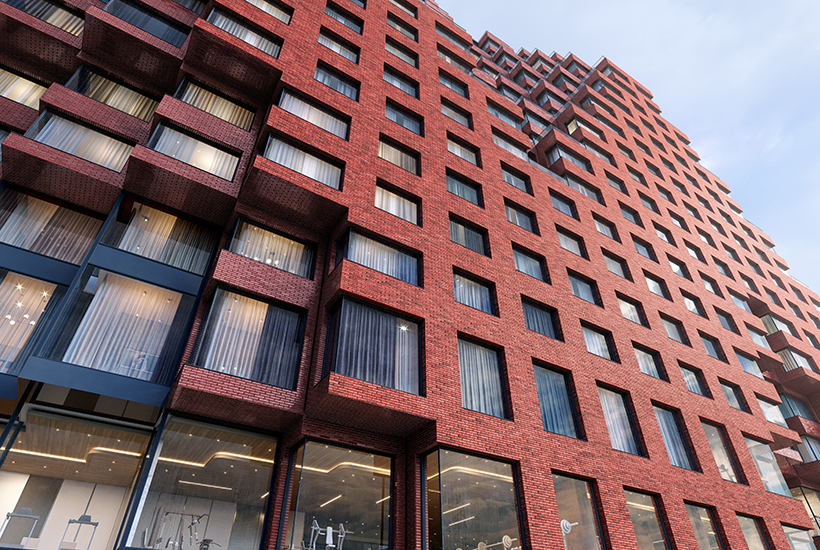 В премиальном проекте Red7 (на фото), который ГК «Основа» строит на Садовом кольце в Москве, приступили к облицовке фасада красным кирпичом. Его изготовили специально для комплекса на немецкой фабрике Deppe. Работы начались на торце дома со стороны здания ВЭБ. Об этом сообщила пресс-служба девелопера.