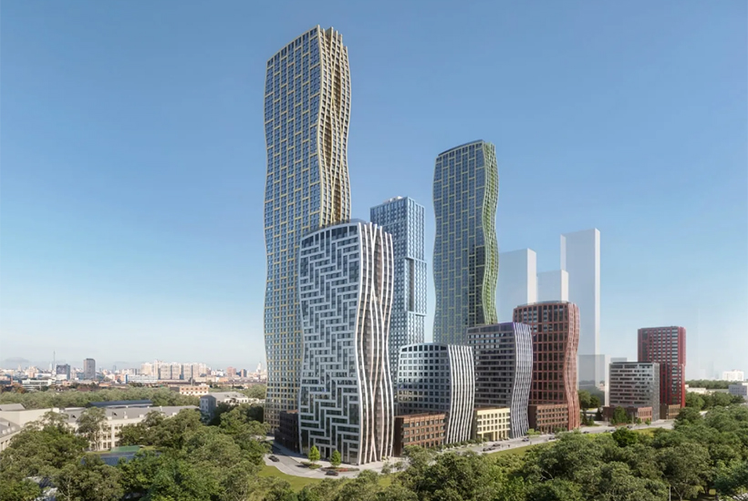 В жилом комплексе скульптурные небоскребы будут высотными доминантами и стилеобразующими структурами. Согласно проекту бюро «Спич», силуэты высоток повторяют линию волны. Такой эффект достигнут с помощью разнонаправленных объемных «лент», проходящих по торцевым фасадам.