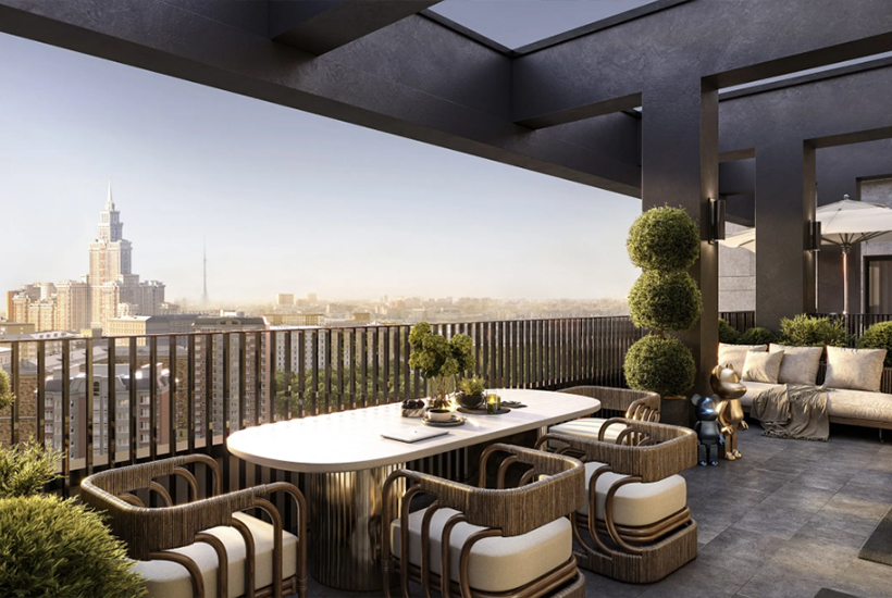 Внутренняя инфраструктура. Будет закрытый двор, круглосуточная охрана, система контроля доступа и видеонаблюдением. Центральным элементом двора выступает фонтан в виде водной глади с интегрированными слэбами камней. Он перекликается с вертикальным фонтаном в центральном лобби. Сделают площадку для детей младшей возрастной группы и игровой комплекс для детей 3-12 лет. Также установят оборудование для воркаута: шведские стенки и турники, оборудуют площадку для йоги с деревянным настилом. Еще девелопер благоустроит пространство между домом и линией МЦК.