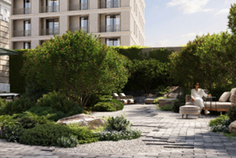 На территории разобьют сад в духе французских парков с гравийными дорожками, валунами и водоемом с кувшинками.