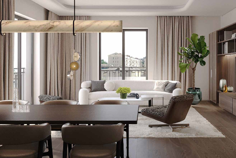 Дом рассчитан на 22 квартиры площадью 114,1-306,2 кв. м, включая пентхаусы на седьмом этаже на 250,2 и 306,2 кв. м. Высота потолков 3,2 м, на седьмом этаже – 3,75 м. Закрытые продажи стартовали в августе 2025 года.
