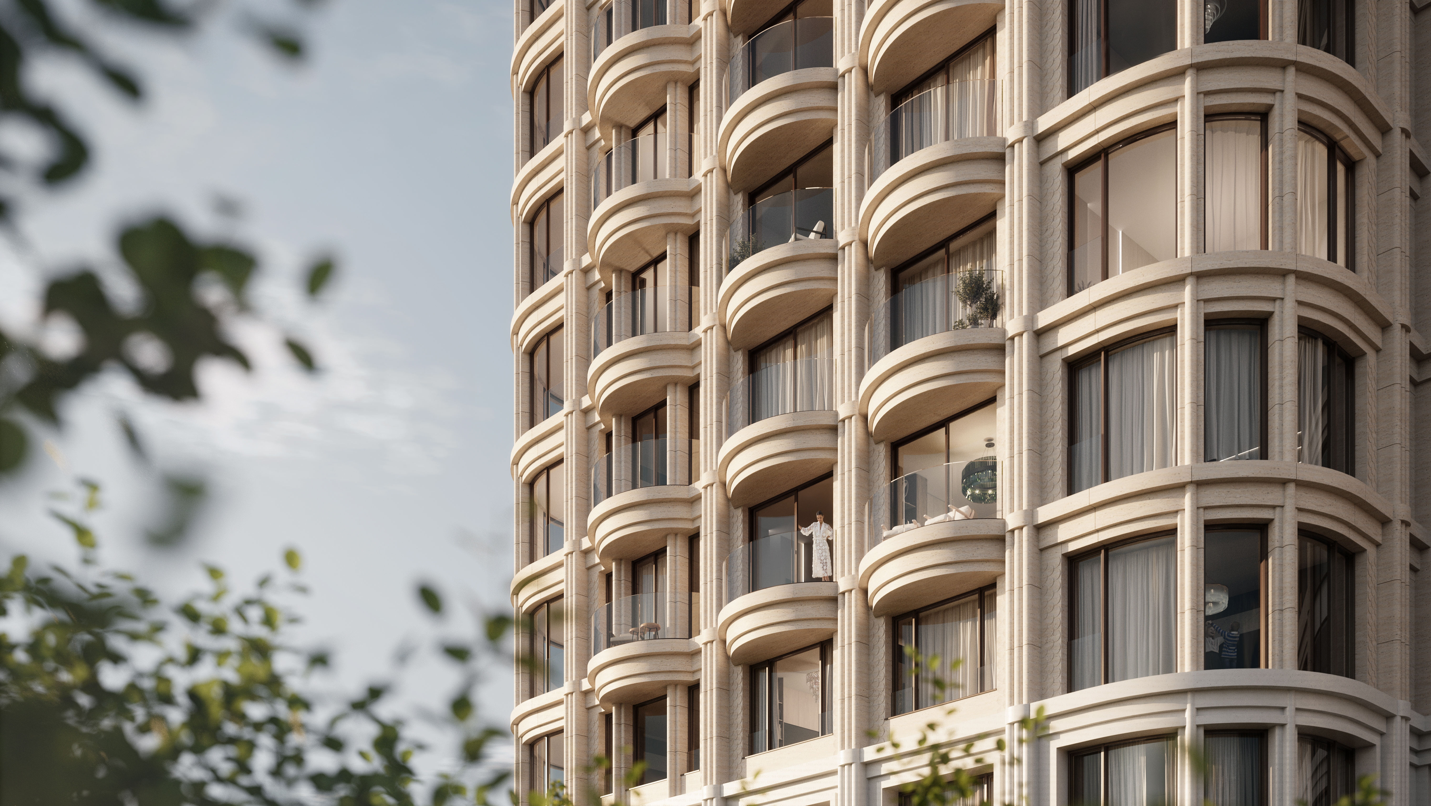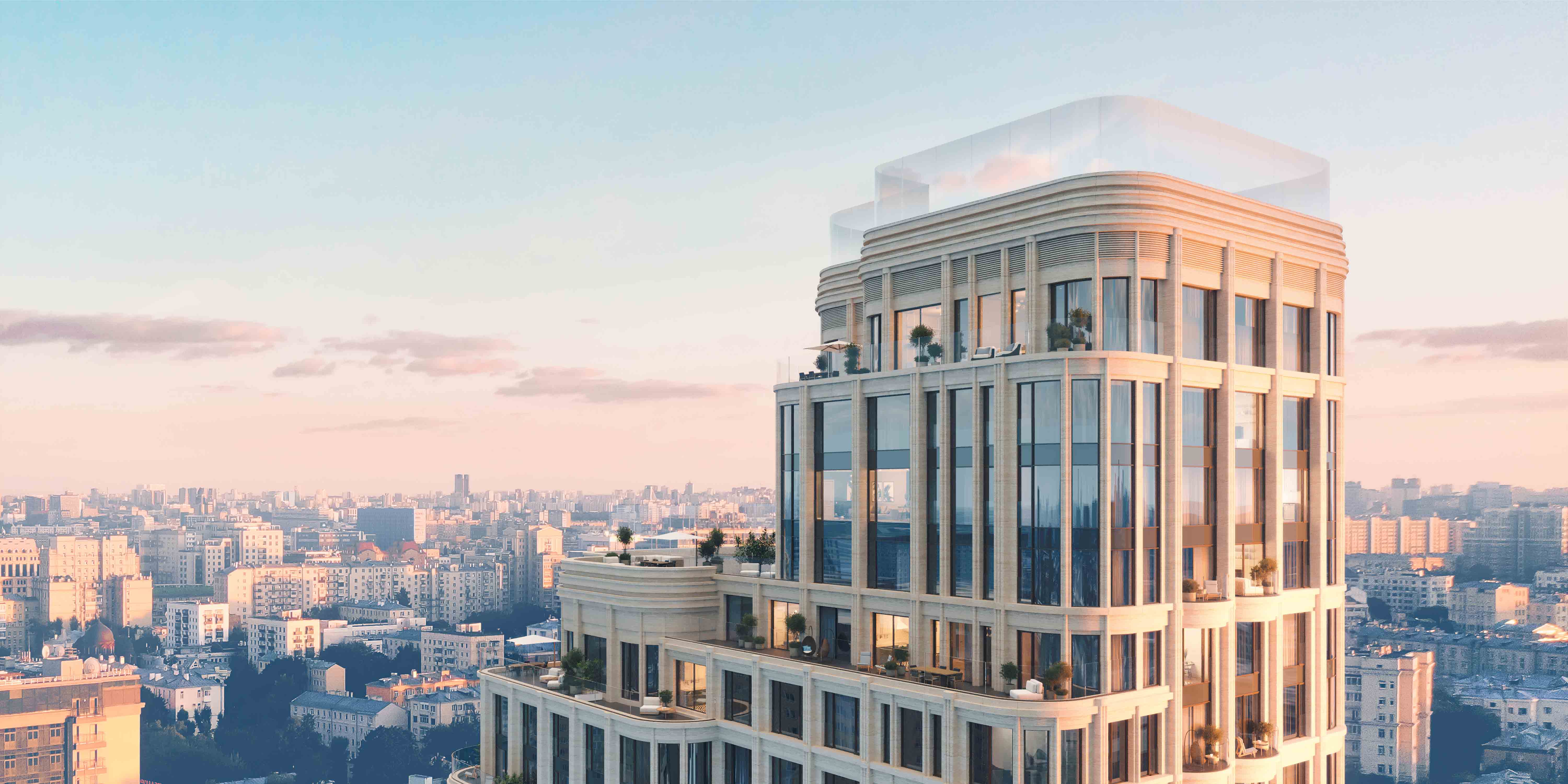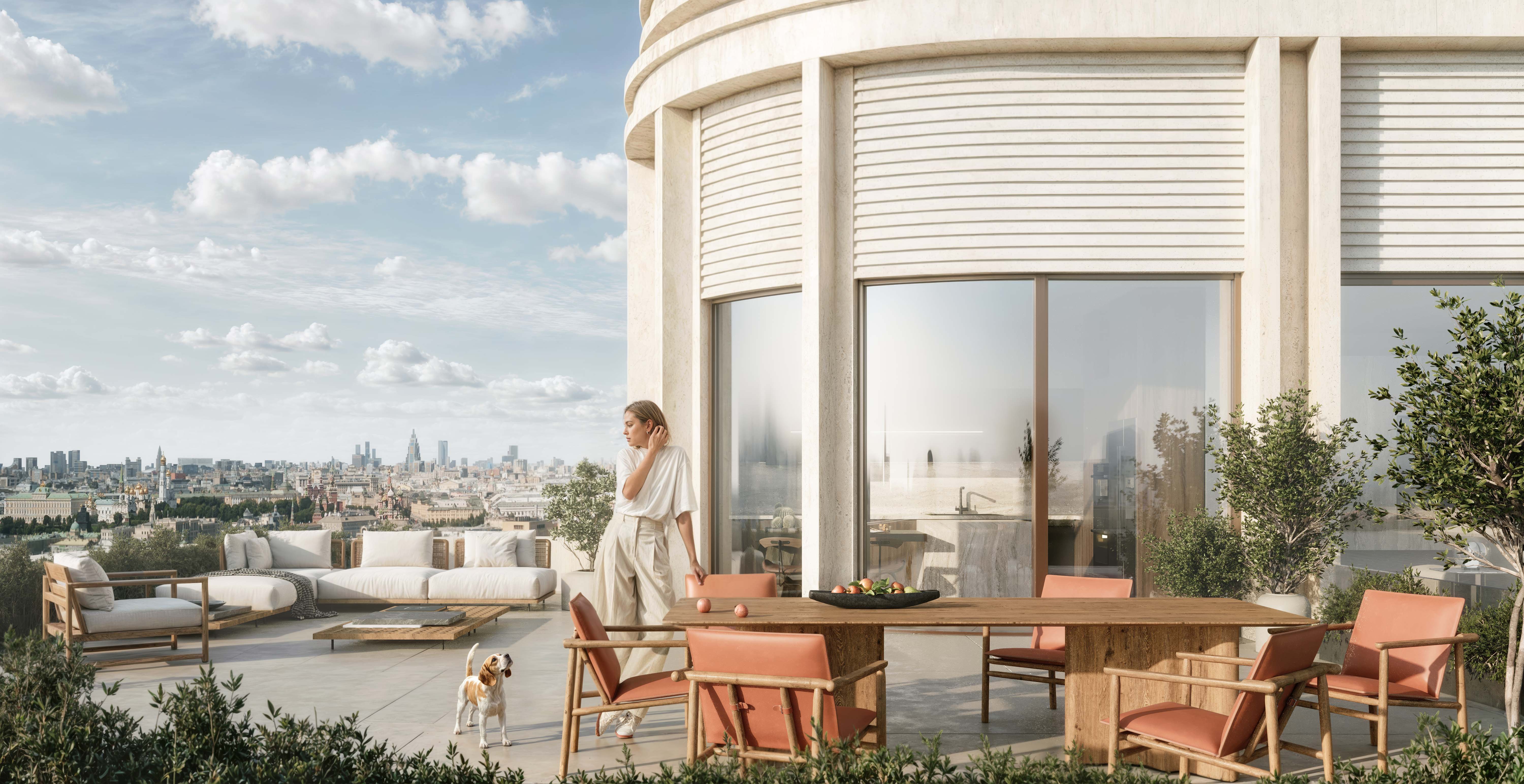 Предусмотрены 472 квартиры площадью 48,3-345,5 кв. м, включая пентхаусы. Будут панорамные окна, большинство – в пол, потолки высотой 3,5-4,7 м, двухстворчатые двери, форматы с моллированным угловым остеклением, вторым светом или окнами в ванных. Половина квартир идет с лоджиями, балконами или террасами. В квартирах на последних этажах предусмотрены камины и террасы. Одну из секций занимают квартиры с отделкой под ключ, итальянскими кухнями Valcucine и техникой V-Zug, установленной сантехникой. Продажи стартовали в сентябре 2024 года.