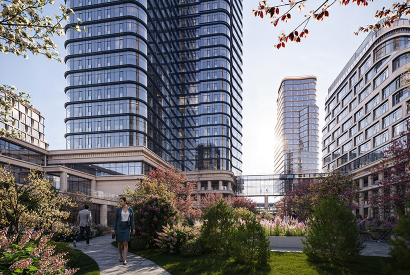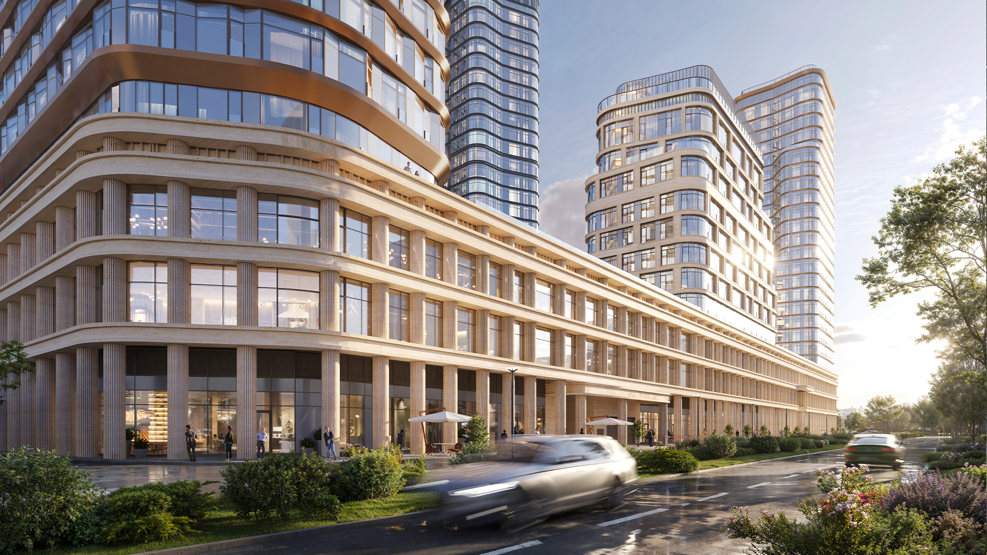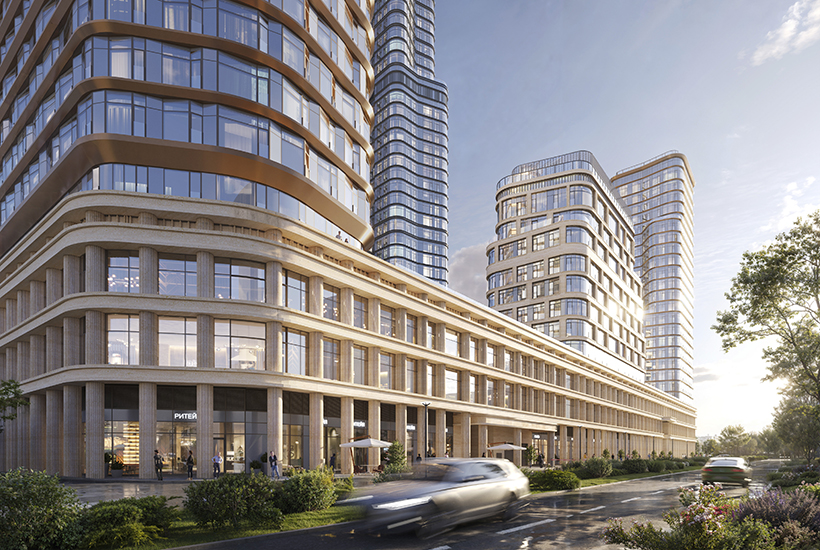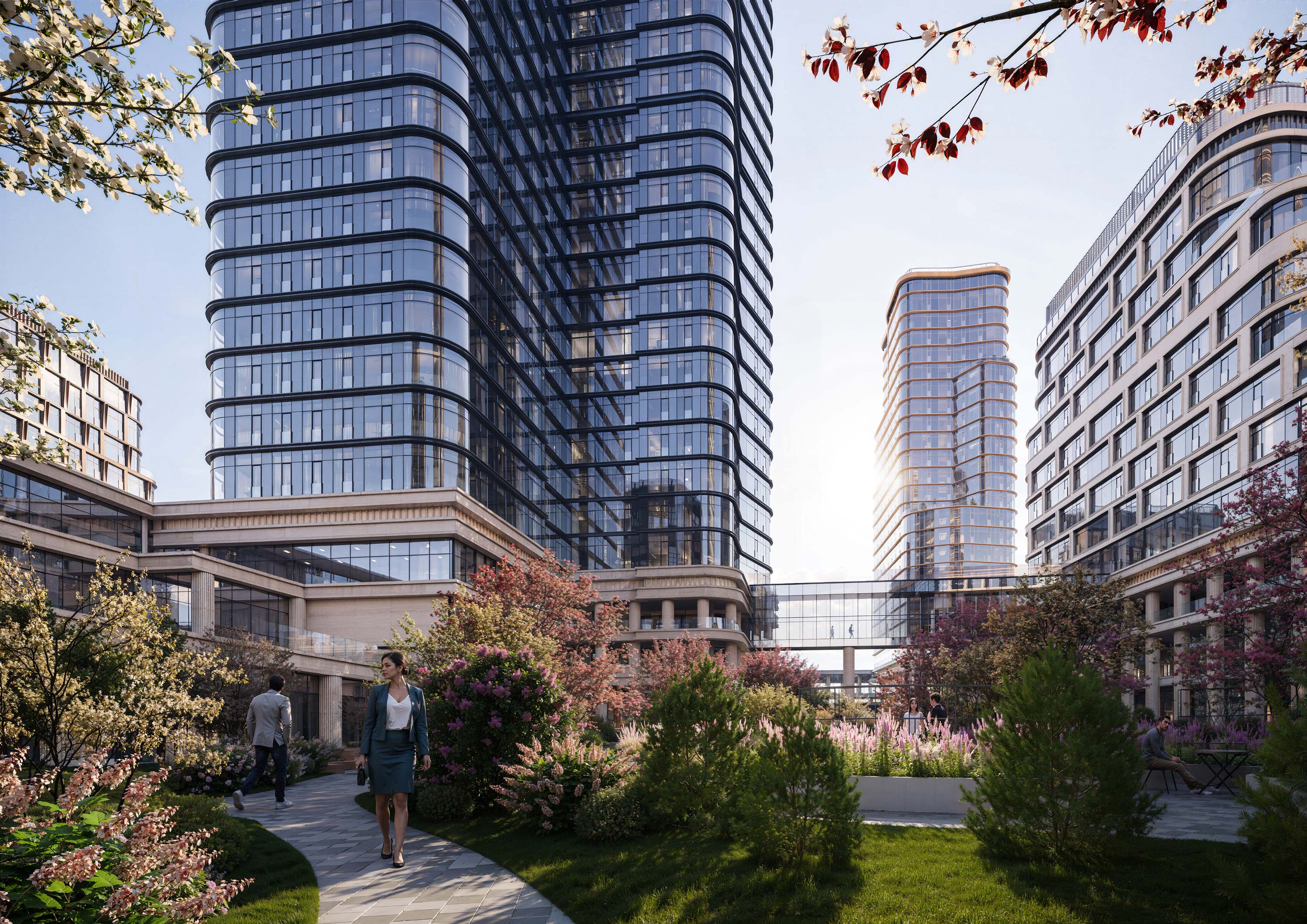Внутренняя инфраструктура. В корпусах будут центральные входные группы площадью до 286 «квадратов» и высотой 6-7 м, подогрев наружных участков мощения, оформление с применением растений и водных элементов, стойка ресепшен, лаунж-зоны и почтовая зона. Предусмотрены круглосуточные услуги консьержей и специалистов сервиса. В комплексе появится образовательный центр с детским садом на 150 мест и школой на 500 мест. В корпусе № 7 откроется комьюнити-центр на 1,3 тыс. кв. м, включающий фитнес-студию, детский клуб, переговорные и репетиторские комнаты, библиотеку и кинозал. Также будет работать фитнес-центр на 2,3 тыс. кв. м с бассейном на 25 м, кафе, рестораны и мини-маркет.