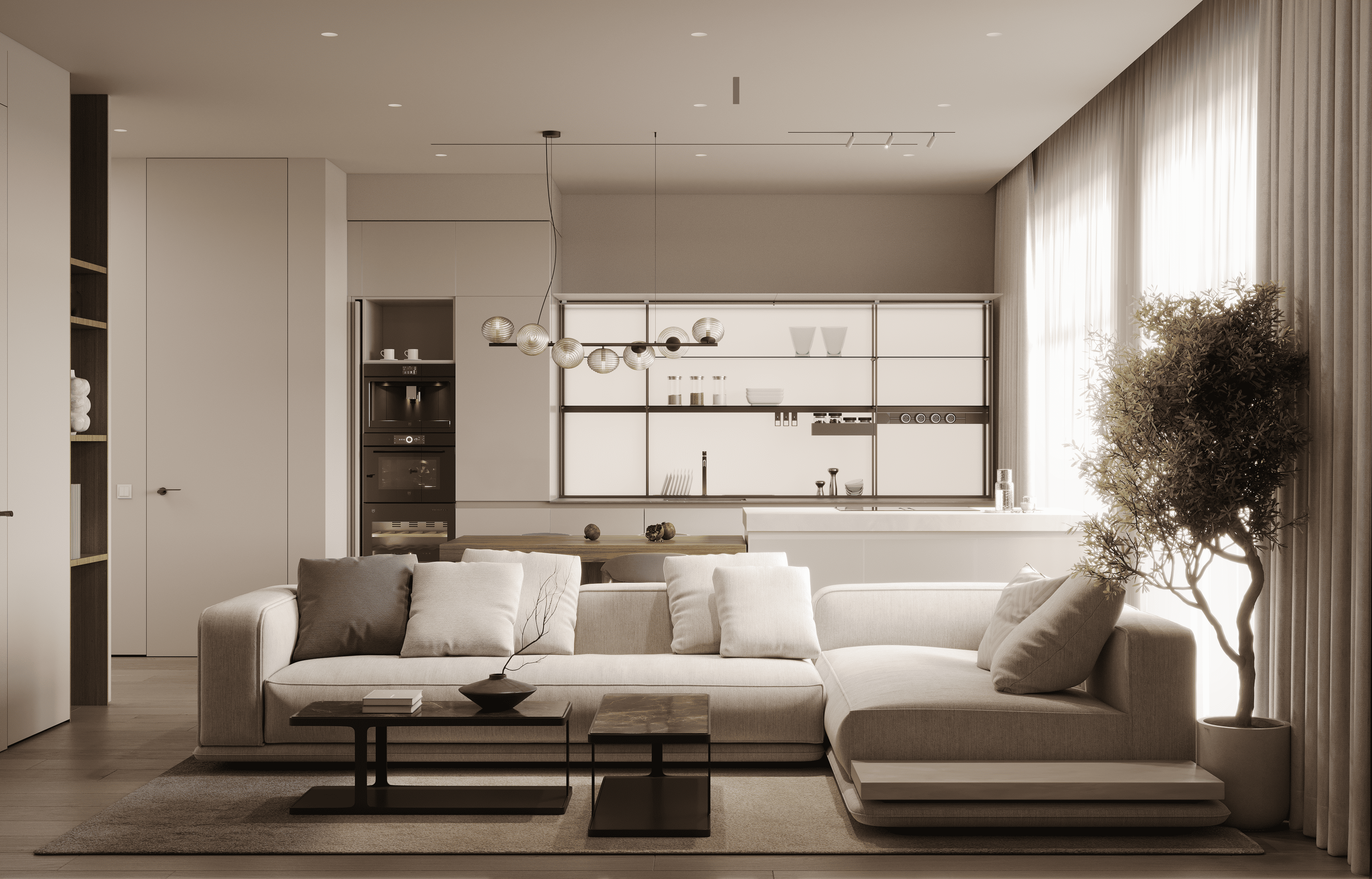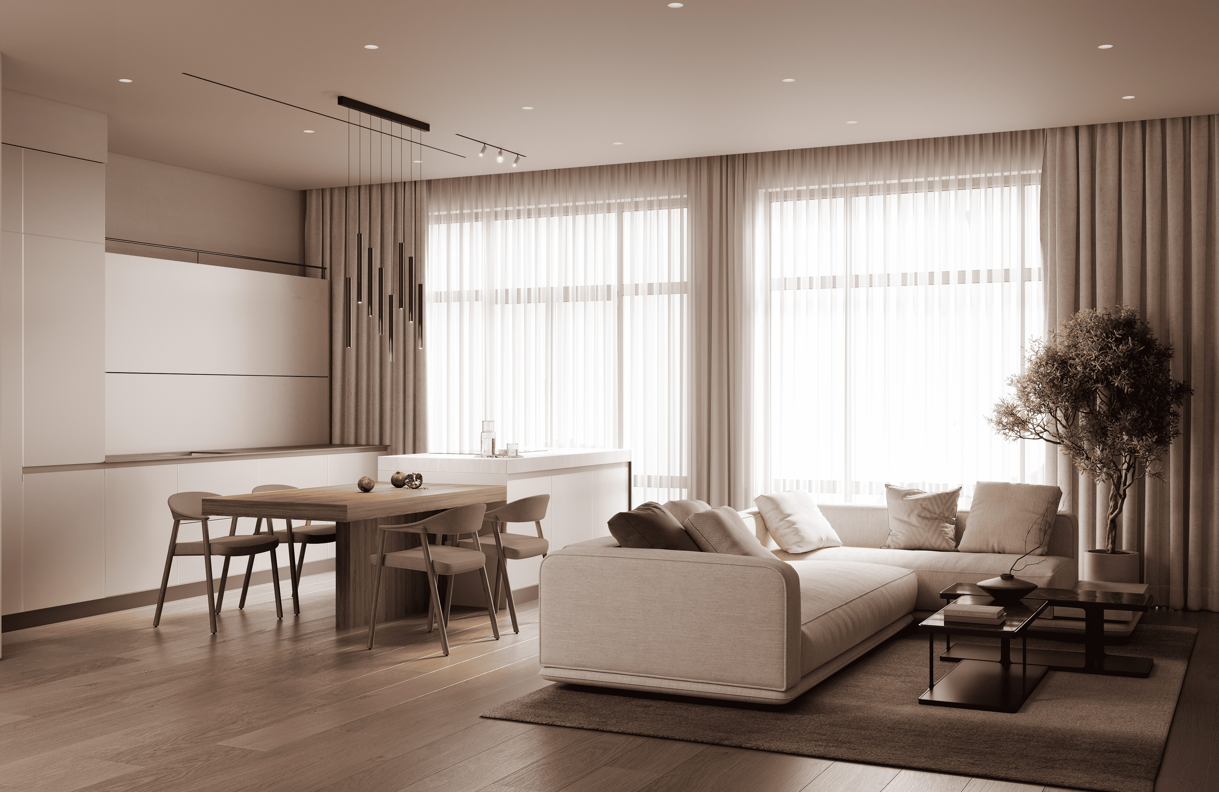 В комплексе находится 962 квартиры площадью 33,5-556,3 кв. м. Есть квартиры с окнами в ванных, полукруглыми окнами, лоджиями (33 лота) и террасами (61 лот). Высота потолков – 3,4 м на типовых этажах и 4,1 м на верхних. Жилье сдают без отделки или с чистой отделкой. Продажи квартир открыли в ноябре 2025 года.
