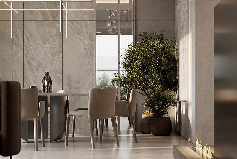 Внутренняя инфраструктура. В лобби предусмотрен круглосуточный консьерж-сервис и лаунж с камином. Также сделают фитнес-зал, бьюти-зону, переговорные и репетиторские. На первых этажах не будет коммерческих помещений. На территории разобьют сад с гипоаллергенными растениями, сделают одну детскую и одну спортивную площадки. Площадь участка озеленения составит 969,3 кв. м. На двух подземных уровнях оборудуют подземный паркинг на 234 машино-места и со спуском повышенной плавности. Также здесь будет комната для водителей.