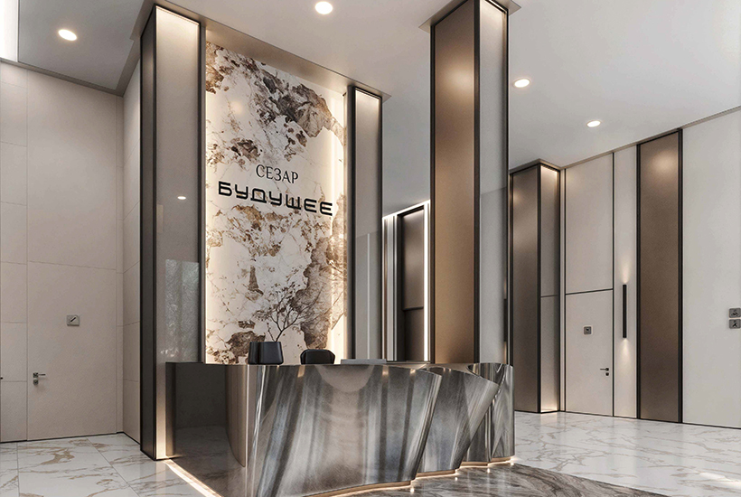 Застройщик. Проект реализует компания Sezar Group. Концепция лобби разработана студией дизайна и архитектуры Nobbey.