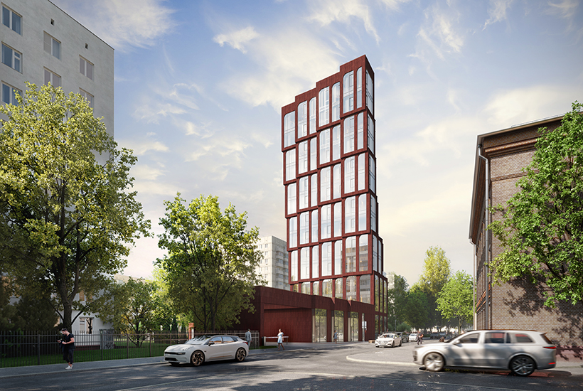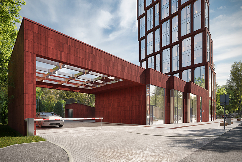 Описание. ЖК бизнес-класса «Зиккурат Преображенский» реализуют на месте бывшей АТС. Здесь построят 13-этажный дом на 8,6 тыс. кв. м (4,8 тыс. кв. м жилья). Здание будет со структурным фасадом со сложной пластикой, исполненной сдвинутыми гранями. Отделку выполнят красной бетонной плиткой и светло-серым стемалитом. Отливы у окон будут металлическими.