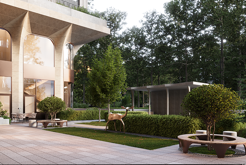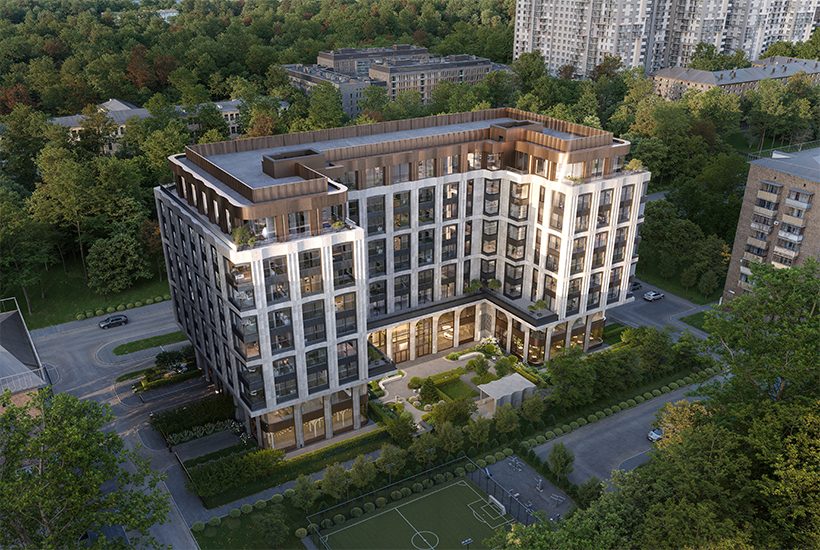 Внутренняя инфраструктура. Будет двухсветное гранд-лобби с зонами ожидания и местами для встреч и работы. Предусмотрены встроенные помещения для объектов инфраструктуры и 590,7 кв. м коммерческих помещений. Во дворе, отделенном зеленой изгородью и малыми архитектурными формами, будет 1,2 тыс. кв. м озеленения и детская площадка. Два подземных уровня займет автостоянка на 55 машино-мест. Еще предусмотрено 42 кладовки.