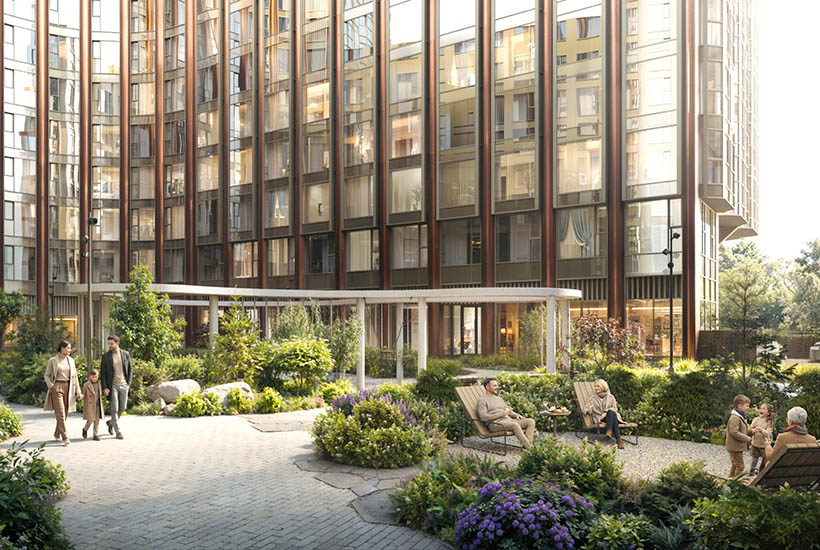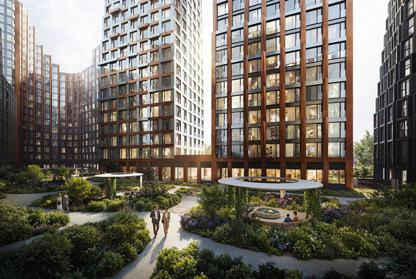 Внутренняя инфраструктура. Инфраструктура включает гранд-лобби с drop-off зоной, многофункциональное пространство, фитнес, коворкинг, детский клуб, рестораны и ритейл. Будет закрытая территория и ландшафтный парк с амфитеатром, плейхабом, арт-пространствами и аптекарским огородом.