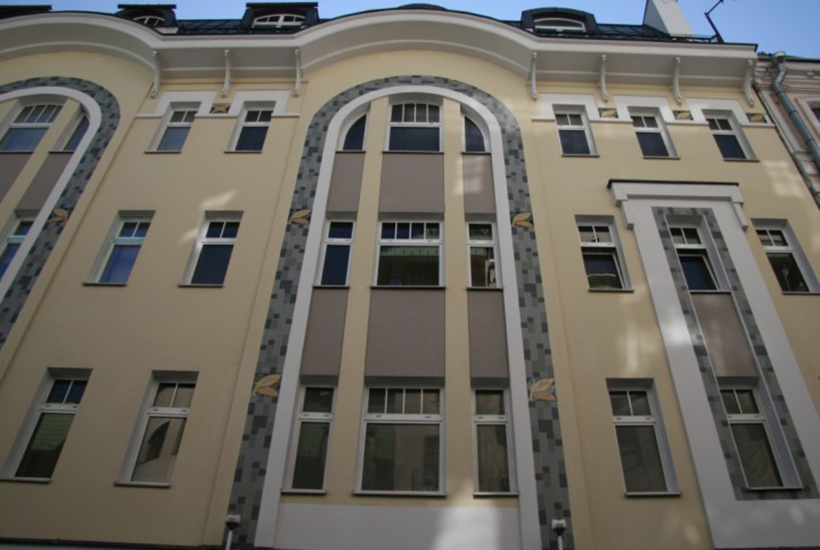 На всех окнах установлены деревянные стеклопакеты, подчеркивающие общую стилистику сооружения. Изюминкой здания являются оригинальные французские балконы. С внешней стороны фасад имеет оригинальное украшение. Это изображение в форме арки, расположенное над центральным окном.