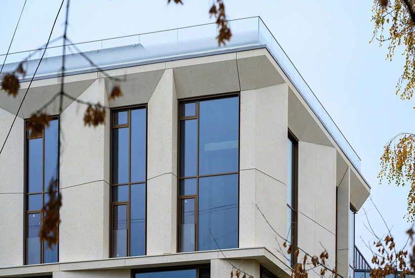 Инфрастуктура. В доме размещено лобби с отделкой из камня и мебелью, а также два коммерческих помещения (суммарно 104 кв. м), в одном из которых – кафе. В подземной части находится механизированный паркинг на 21 машино-место с зарядками для электромобилей.