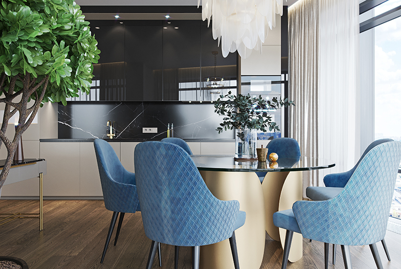 Проект рассчитан на 1511 квартир площадью 24-347 кв. метров. Бронирование стартовало в первом квартале 2021 года. Квартиры продают без отделки, с предчистовой или дизайнерской отделкой. На выбор два стиля: Art, Fusion. Это текстуры камня в теплых тонах с черными контрастными деталями либо акценты из латунно-золотистого хрома в комбинации с камнем крупных текстур.