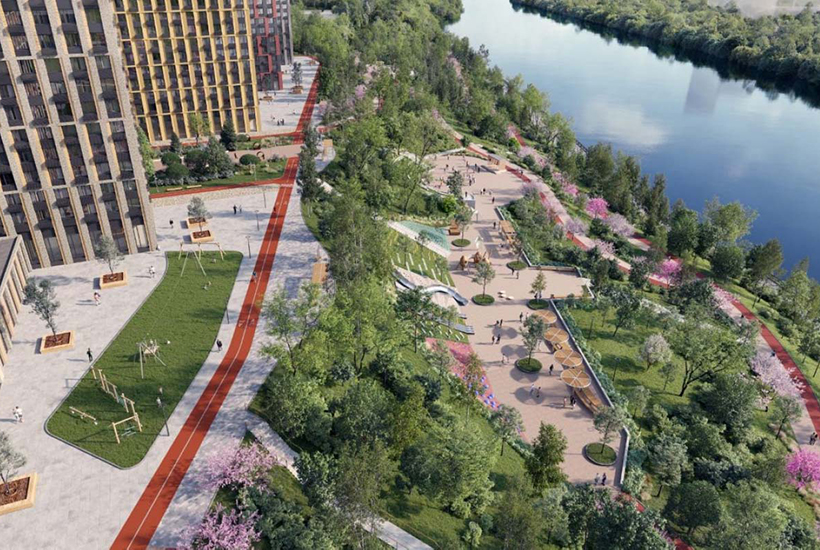 Внутренняя инфраструктура. Построят школу на 900 мест и детский сад на 250 детей, на первых этажах домов откроются супермаркеты и кафе. В подземной части первой очереди оборудуют паркинг на 406 машино-мест. с видеонаблюдением, Wi-fi и системой распознавания номеров. Внутреннее благоустройство – территория площадью более 7 гектаров. Это двор на нескольких уровнях: на первом – детские площадки с песочницей и скалодромом, на втором – зона отдыха для взрослых с мини-амфитеатром и территорией для коворкинга. Благоустроят набережную: сделают смотровую площадку, беговые и велодорожки, зоны выгула собак и причал «Волна.