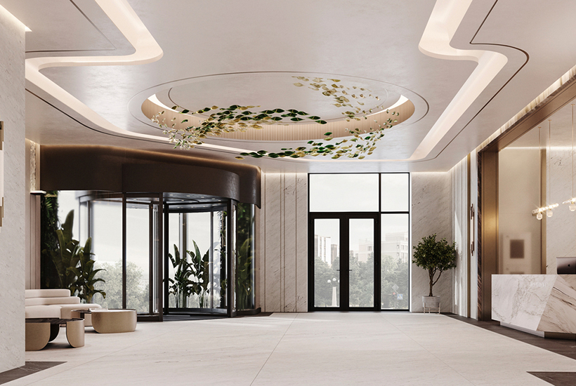 Внутренняя инфраструктура. Входные пространства оформят в стиле ар-деко с мрамором и металлом. На ресепшн будет круглосуточно консьерж-сервис. Можно будут заказать обслуживание, включая клининг, букеты цветов и завтрак. Предусмотрена зона с диванами и креслами. Оборудуют лапомойку.