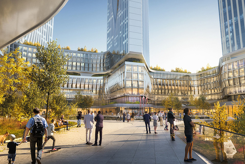 Комплекс включает три элемента: стилобат, пояс на нем и еще выше – пять небоскребов. Стилобат выступает инфраструктурным ядром. Второй уровень отведан под таунхаусы и пространство для их жителей. Высота разноуровневых башен будет до 200 метров.