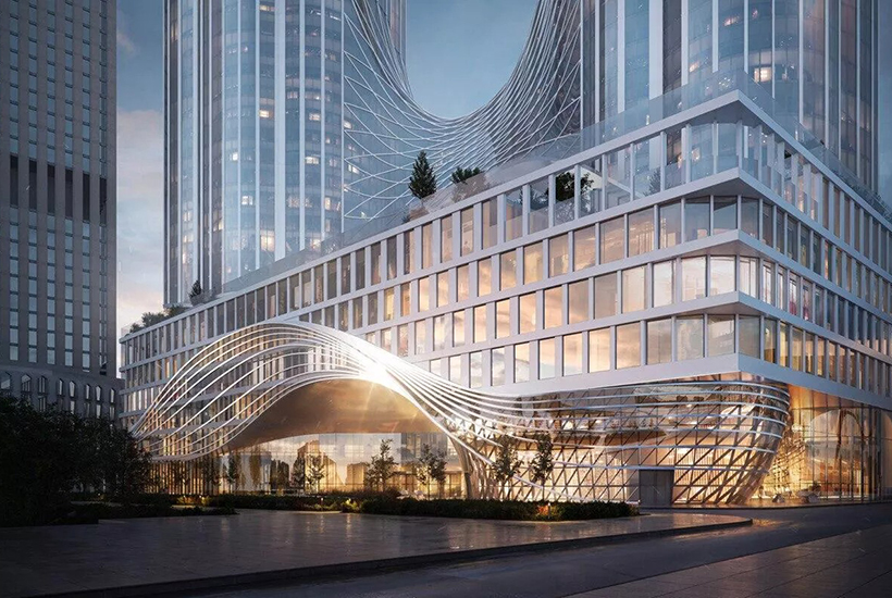 Описание. ЖК Aurus Residences – высотный премиальный комплекс на участке площадью 1,3 гектара в рамках проекта «Сити-2», названный в честь российской марки авто люкс-класса Aurus. Общая площадь ЖК с футуристическим силуэтом составит на 316,2 тыс. кв. м, в том числе 137,3 тыс. кв. м жилья. Это два жилых небоскреба на 83 и 96 этажей с общим шестиэтажным стилобатом и подземной частью. Фасады оформят модульными алюминиевыми кассетами, стилобат облицуют камнем, а волнообразные детали – алюминиевыми профилями.