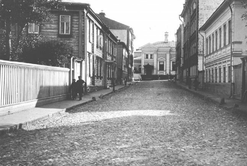 Однако элитарность Остоженки создана искусственно, благодаря маркетинговым талантам первых застройщиков этого района. А их выбор пал на Остоженку во многом благодаря строительству метро. Дело в том, что прокладка первой линии метрополитена на участке «Парк культуры» – «Сокольники» велась открытым способом, в результате чего было разрушено много исторических зданий. Частично эти участки были застроены, но позже, уже при Хрущеве (фото выше), однако свободных площадок под строительство домов для новой элиты все равно осталось очень много. Впрочем, расселять и сносить хрущевки было существенно проще, чем дореволюционные дома с историей. Хотя, ради справедливости стоит заметить, что в царское время на Остоженке селились не самые богатые купцы и мещане. Здесь было много деревянных двухэтажных малопримечательных домов (фото ниже).