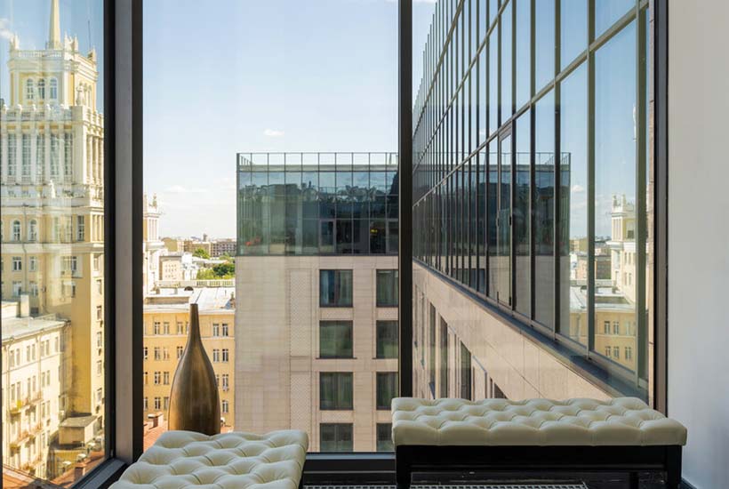 Летом главное впечатление при визите в этот элитный дом, построенный на второй линии Садовой-Кудринской, действительно, производят лаундж-зоны с ландшафтным садом на крыше. В другое время года за буржуазным настроением стоит спуститься во двор.
