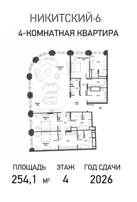 4-комн.: 254–1 108 м² (пентхаусы) под запрос