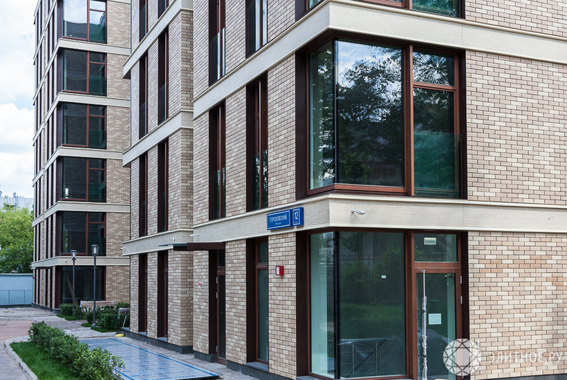 Комплекс апартаментов бизнес-класса «Гороховский 12» представляет собой современное архитектурное решение. В доме панорамное остекление, фасады выполнены из натурального камня, а также декоративных панелей с флористическим орнаментом.