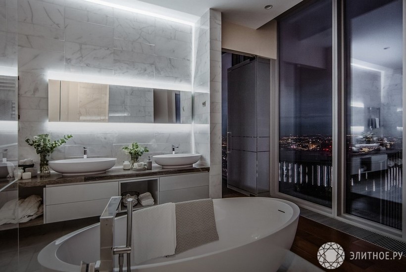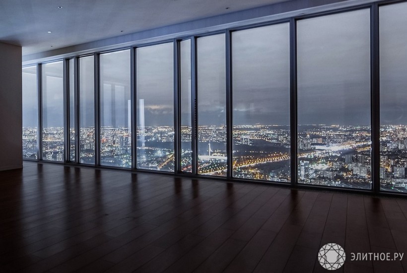 4-х комнатная квартира на 76 этаже: общая площадь - 291.0 м², жилая - 163.0 м², кухня - 25.0 м²., 4 санузла.