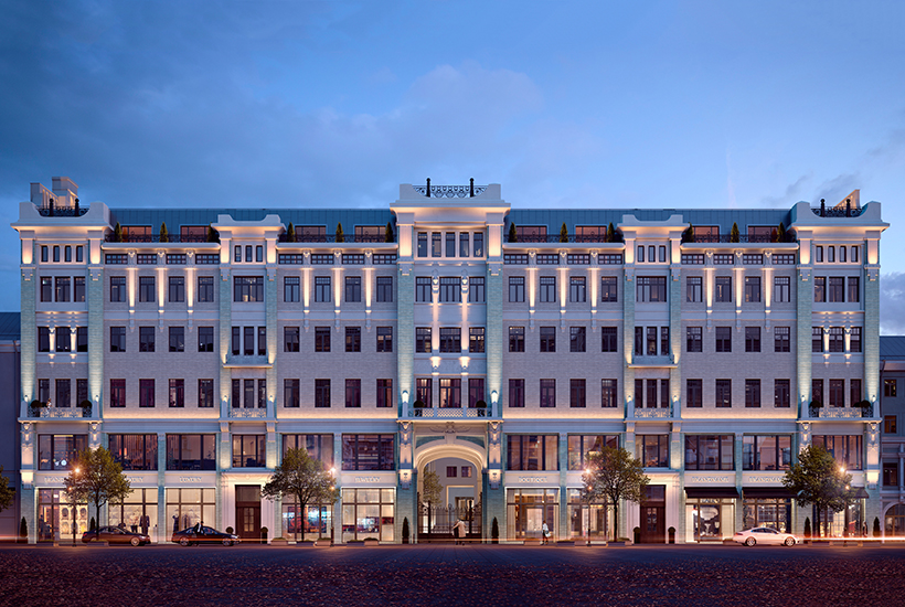 Описание. Сдача в эксплуатацию запланирована на второй квартал 2021 года. «Большая Дмитровка IX» – комплекс площадью 33 тыс. кв. метров на месте бывшей усадьбы генерал-майора Николая Муравьева. Проект включает три 6-этажных особняка. Это «История», «Свет» и «Порода». Первый из них – отреставрированное историческое здание, доходный дома купца Алексея Михайлова, построенный в 1903 году и перестроенный в 1912 году по проекту Адольфа Эрихсона. Восстановят фасад, в том числе глазированную плитку, лепные украшения и маски египетских фараонов, а также метлахскую плитку в парадных, штукатурные узоры, кованные лестничные ограждения и ведущие в приквартирные холлы двери. Их дополнят современными деталями – металлическим пластинами в отделке стойки ресепшн и лифта.