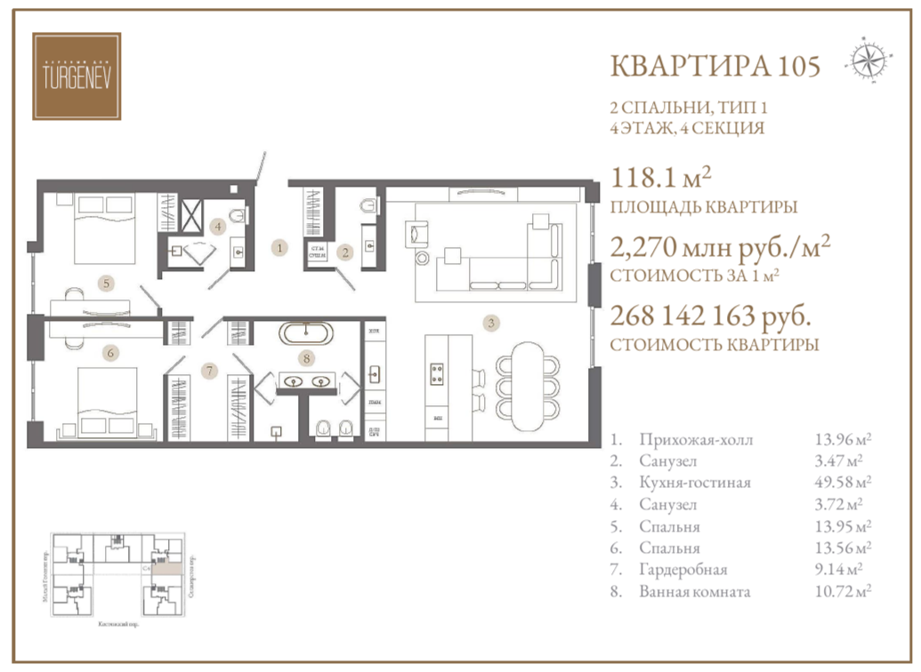 Оригинальная архитектура сочетается с продуманными планировками и высоким качеством постройки. В ЖК Turgenev представлены классические квартиры разной площади и роскошные пентхаусы для тех, кто ищет большего для себя.