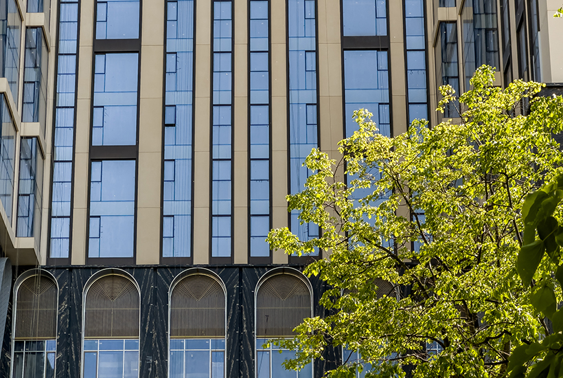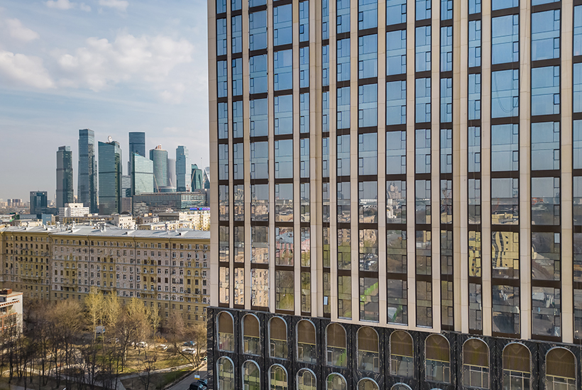Описание. «Поклонная 9» – многофункциональный комплекс премиум-класса общей площадью 115 тыс. кв. метров. Проект реализуют на месте недостроенного бизнес-центра «1812», который начали возводить в 2008 году, но почти сразу заморозили. Это будет дом с 32 надземными и пятью подземными этажами. В архитектуре здания сочетаются черты ар-деко и московских высоток. С третьего по седьмой этаж дома расположится 5-звездочный отель SO/Moscow от гостиничного оператора Accor. Гостиница рассчитана на 163 номера. На четырех подземных уровнях сделают паркинг на 288 машин.