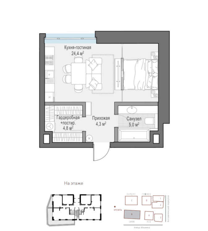Район. Комплекс расположен у станции метро «Площадь Революции», примерно в 300 метрах от Кремля и парка «Зарядье». Рядом находится ГУМ, торговый центр «Никольский пассаж» и Гостиный двор. Пешком можно дойти до школы № 179.