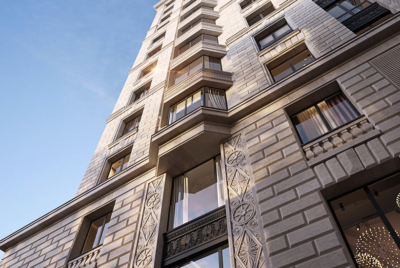 Проект рассчитан на 49 квартир на 100-336 кв. метров. Последний этаж отведен под два пентхауса площадью 273 и 304 кв. метра. В обоих пентхаусах будут отдельные лифты, камины, террасы, в одном – бассейн. Продажи стартовали в марте 2023 года. Описание. «Хамовники 12» – клубный дом де-люкс, 14 этажное здание общей площадью более 16,1 тыс. кв. метров. Архитектурный стиль – неоклассика. Фасады доформят юрским мрамором, декоративными деткалями и барельефными панно скульптора Нельсона Афиана. Разрешение на строительство выдано в октябре 2022 года. Ввод в эксплуатацию планируется в четвертом квартале 2025 года Застройщик. Девелопер – компания «Колди». Архитектурное решение разработала мастерская «Евгений Герасимов и партнеры». Интерьеры создало бюро Oleg Klodt Architecture and Design. Внутренняя инфраструктура. Интерьеры продолжат архитектурную концепцию. Также используют акценты ар-деко. Отделка будет травертином, гипсом, тремя видами мрамора, шпоном клена, латунью и поталью. В лобби установят кованный портал, люстры, мебель и предметы декора. Появится библиотека из прижизненных изданий великих русских поэтов, живших в Хамовниках в 18-19 веках. На первом этаже дома сделают клубную SPA-зону и ресторан. В подземной части оборудуют четырехуровневый паркинг, включающий 87 машино-мест, семь мото-мест, кладовки и депозитарий. Доступ на парковку – через автомобильные лифты. Место. Клубный дом построят между Саввинской набережной и сквером Девичьего поля, в километре от станции метро «Киевская». Также около километра до школы № 1535 и Усачевского рынка. Рядом с проектом работают магазины «Азбука daily», «Мираторг», немного дальше до супермаркетов «Перекресток» и «Пятерочка». Недалеко работает несколько фитнес-клубов, в том числе Fitness Eywa Health & SPA и «Xfit Фьюжн».