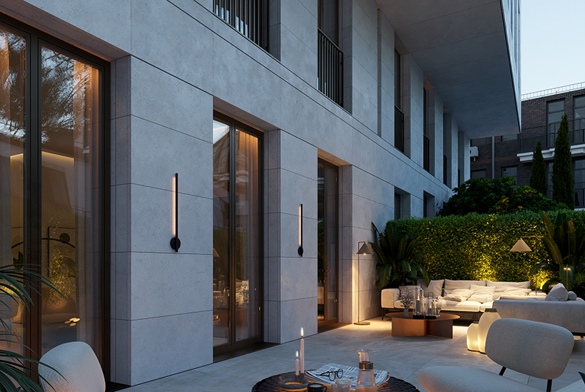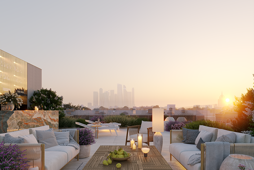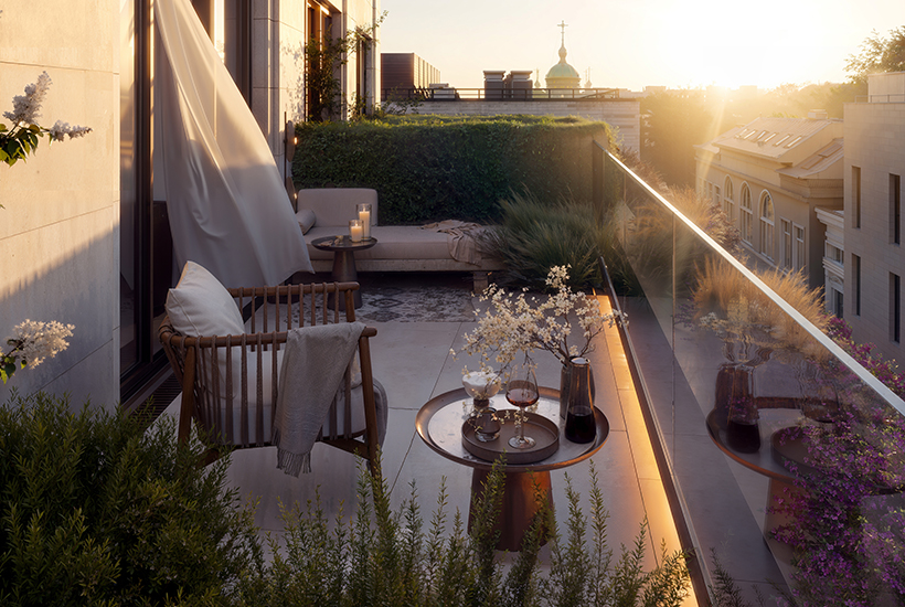 В комплексе спланировано восемь апартаментов на 78,5-365,6 кв. метра и один двухуровневый пентхаус площадью 654,3 кв. метра с камином, выходом на крышу, террасой. Продажи начались в первом квартале 2024 года.