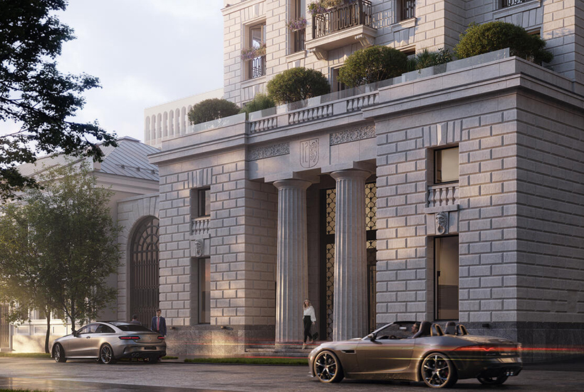 На первом этаже дома сделают клубную SPA-зону и ресторан. В подземной части оборудуют четырехуровневый паркинг, включающий 87 машино-мест, семь мото-мест, кладовки и депозитарий. Доступ на парковку – через автомобильные лифты.