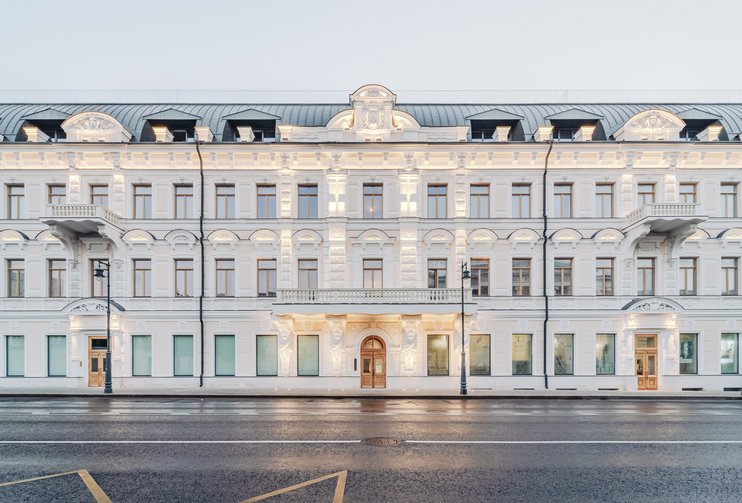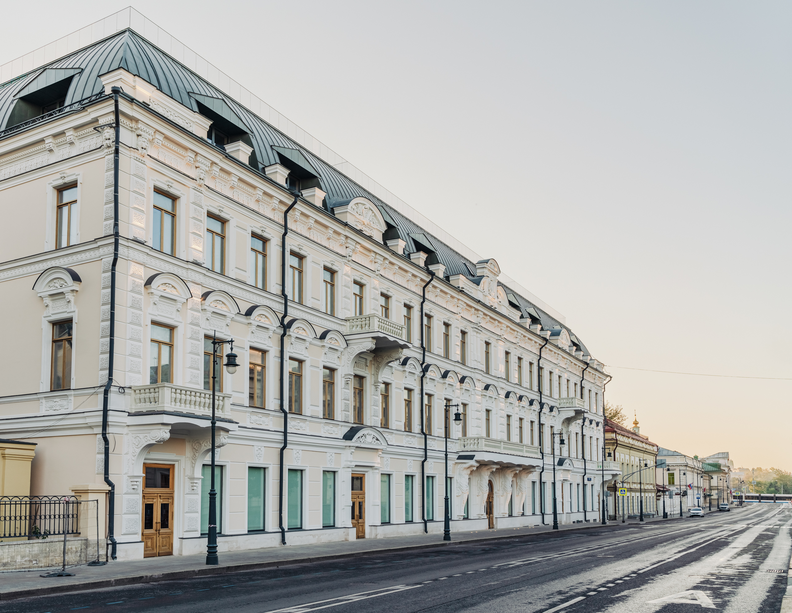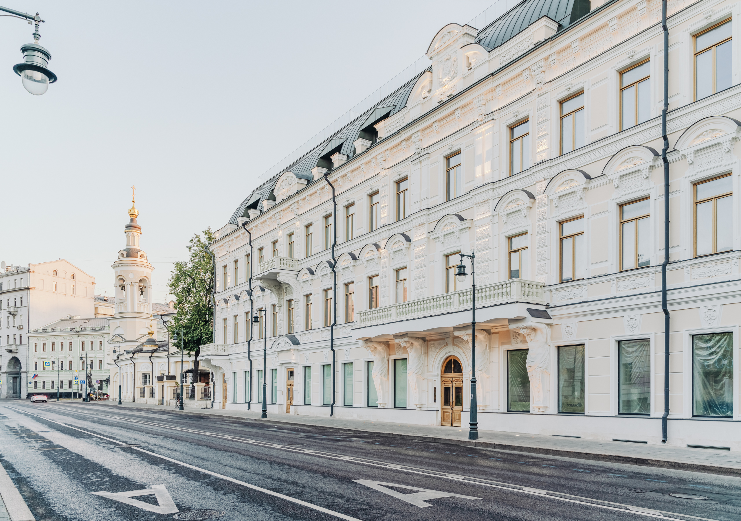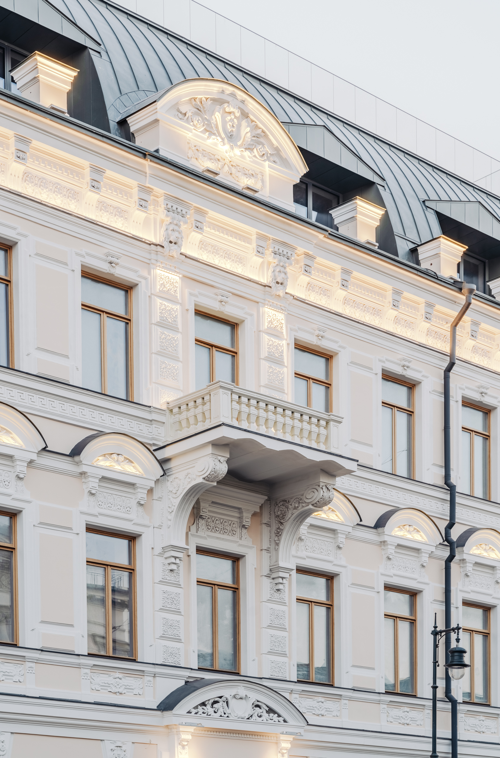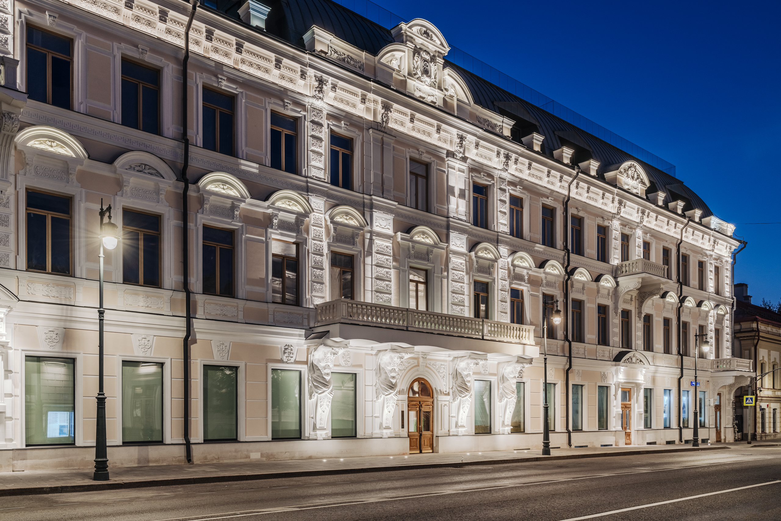 «Дом с Атлантами» – это реконструкция строения, возведенного еще в 1882 году. Название отображает внешний облик здания, фасады, украшенные скульптурами, выглядят эффектно и подчеркивают высокий статус объекта. Литые чугунные ограждения, львиные маски и жезлы Меркурия дополняют общую картину – здание невозможно не заметить в окружающем ландшафте.