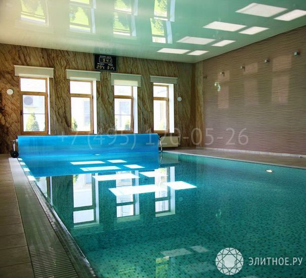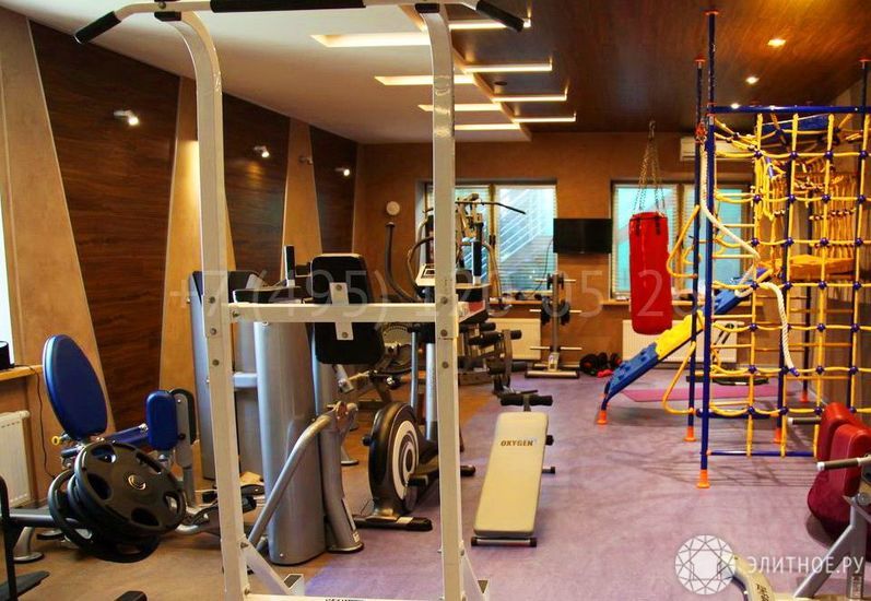 Так же на участке имеется банно-спортивный комплекс 250 м2, в нем спортзал, бассейн 4,5 х 12 м с противотоком и гидромассажем, русская парная с 2-мя печками (быстрого и длительного нагрева), хамам, душевая, туалет, комната отдыха с кухней, в подвале этого помещения находится раздевалка, постирочная, хозяйственный отдел и технический отдел бассейна. В этом же здании имеется 2-комнатная квартира с отдельным входом (гостевого или служебного назначения). На 2ом этаже так же имеется жилое помещение со своим с/у и большая гардеробная-склад для сезонной одежды и прочих вещей.