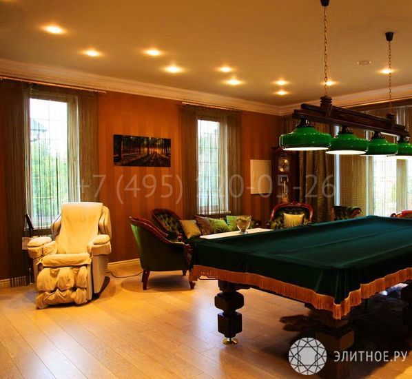 На 1-ом этаже: холл, каминный зал с действующим камином и выходом на открытую веранду, кухня-столовая, бильярдная, котельная, 2 комнаты свободного назначения, 1 с/у с душевой кабиной, постирочная;
