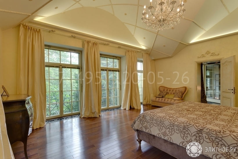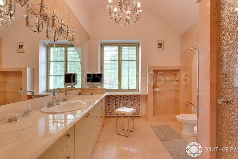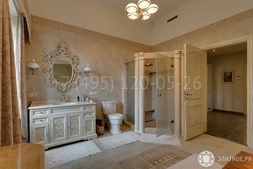 Срочная продажа! Роскошный особняк площадью 597 кв.м. расположен в элитном поселке в Усово, в удалении от основной магистрали, на участке 35 соток и буквально утопает в зелени. Коттедж построен из кирпича в два уровня + цоколь, продается в отличном состоянии “под ключ с мебелью”. Недавно проведена полная реконструкция, состояние нового дома. Стены – кирпич, дерево. Высококачественная внутренняя отделка и интерьеры: итальянская мебель, сантехника Villeroy&Boch, Devon&Devon, техника Ilve и Miele. Стоимость дома – без мебели.