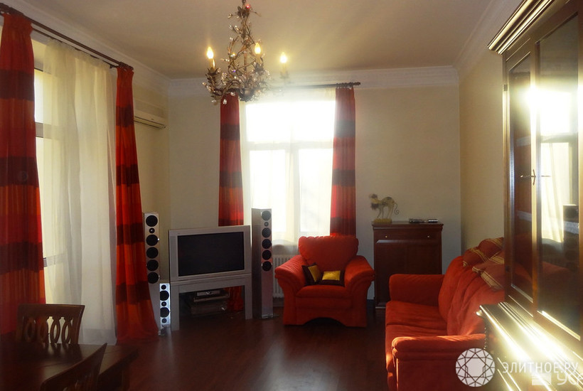 2-х комнатная квартира 77 кв.м. Гостиная 23 кв.м., спальня 26 кв.м., кухня 10 кв.м. Два балкона – во двор – застекленный, с креслом и столиком для курения; второй не застекленный – с видом на реку. Окна на три стороны, в том числе с видом на Москву-реку. Ремонт дизайнерский. Полы в прихожей и в санузле с подогревом. Кондиционеры. Квартира полностью меблирована (мебель стильная, итальянская), с большим антикварным зеркалом с консолью. Квартира сдается с техникой (но без картин): весь спектр кухонной техники. Спутниковое телевидение. Установлена дорогая сигнализация. http://usadba.ru/object/28108