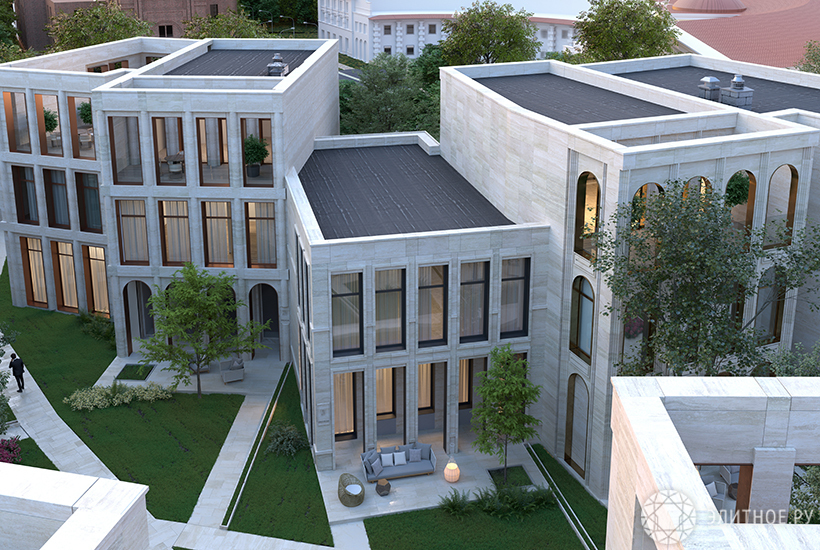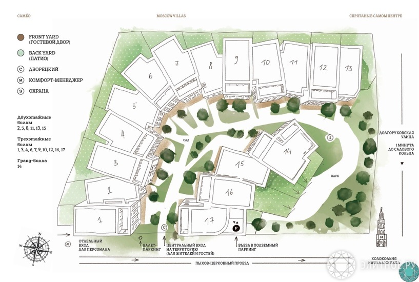 Виллы формируют единый ансамбль, в котором никто не копирует соседа, создавая приятное глазу разнообразие.